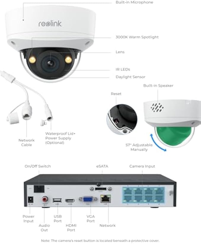 • Optimized Structural Design: Our camera features IK10 vandal-proof and IP67 waterproof ratings, along with durable all-metal construction for reliable outdoor use. Easily adjust the angle with the built-in rotating bracket for optimal coverage (PT control not supported via app or client).